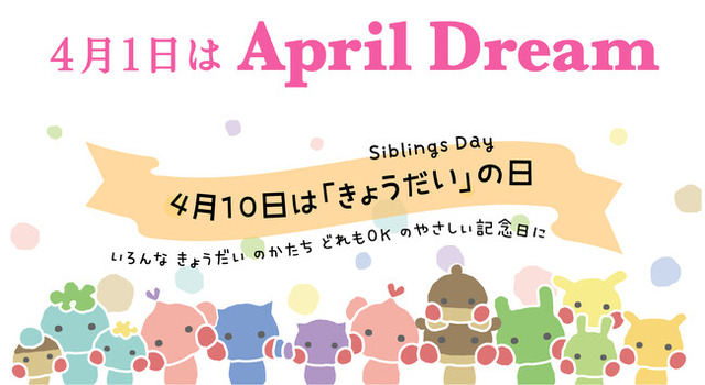 「きょうだいの日(シブリングデー)」は、父の日、母の日の、きょうだい版の記念日です。男女や年齢の区別なく兄姉弟妹を表すひらがな表記を使っています(英語ではbrotherとsisterを含めて「sibling」といいます)。