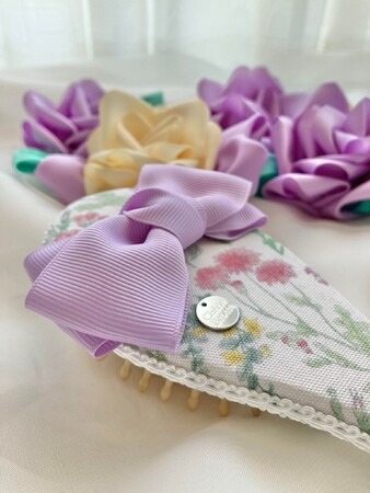 針と糸を使わず専用シートを使って貼るだけの工程でヘアブラシをデコレーションするハンドメイドがあります。