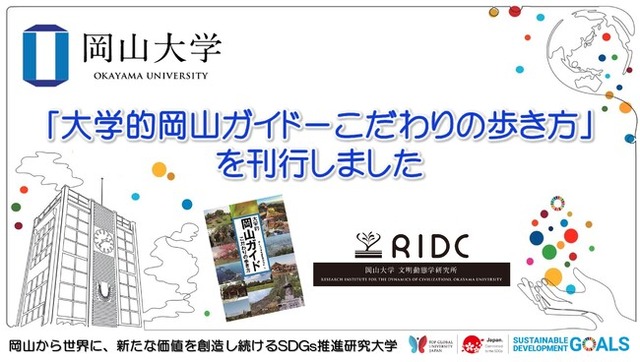 本書は、岡山のガイドブックであるとともに、岡山大学で行われている岡山に関する研究のガイドブックとしてもお読みいただけます。これらの研究に興味・関心をお持ちになった方は、ぜひ岡山大学に来ていただき、一緒に研究を進めてまいりましょう。