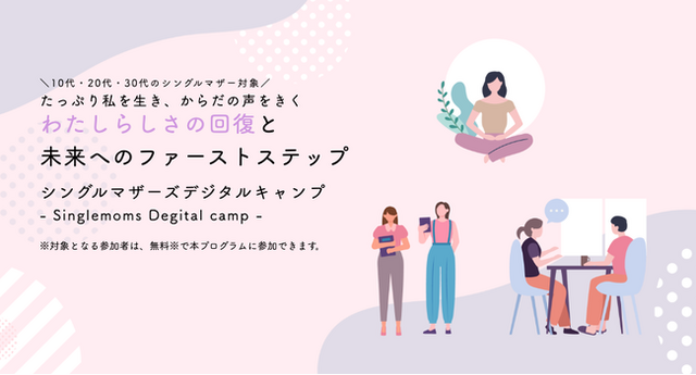 シングルマザーの心身のセルフケアを支援するNPO法人シングルマザーズシスターフッド(所在地:東京都国立市、代表:吉岡マコ)は、一都三県在住の若年層シングルマザー向けデジタルスキルアップ支援プログラム「シングルマザーズ デジタル キャンプ」の参加募集を2023年4月2日(日)から開始いたしました。対象となる10代~30代のシングルマザーの参加者は、無料で本プログラムに参加できます。