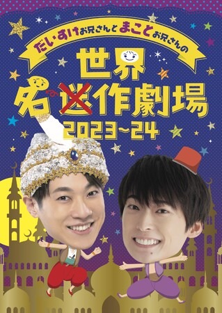 新型コロナ感染の影響によりツアーが中止となっていた 、“だいすけお兄さん”こと横山だいすけが出演する大人気『世界迷作劇場』新シリーズが、3年という期間を経て再始動いたします! 今回で4回目のツアーとなる今年は、3月にNHK Eテレで放送されている幼児向け番組「おかあさんといっしょ」を卒業した第12代目体操のお兄さん“まことお兄さん”こと福尾誠が、横山だいすけと共に全国を駆け巡ります!