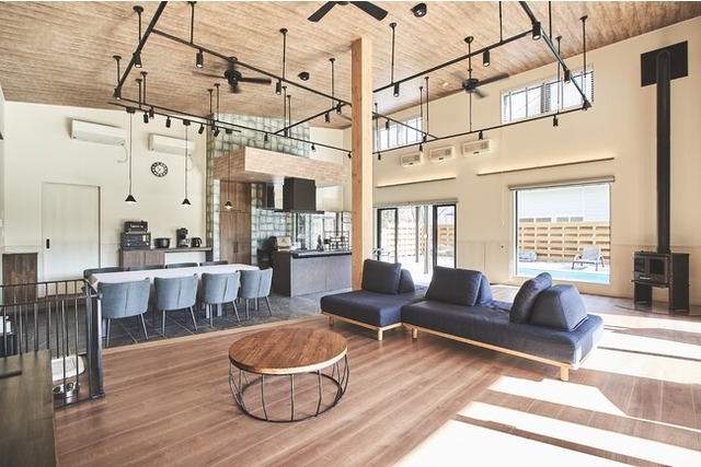 5mの天井高を誇る圧巻のリビングと土間ダイニングが特徴的なヴィラを、地元の工務店で新しく建築しました。