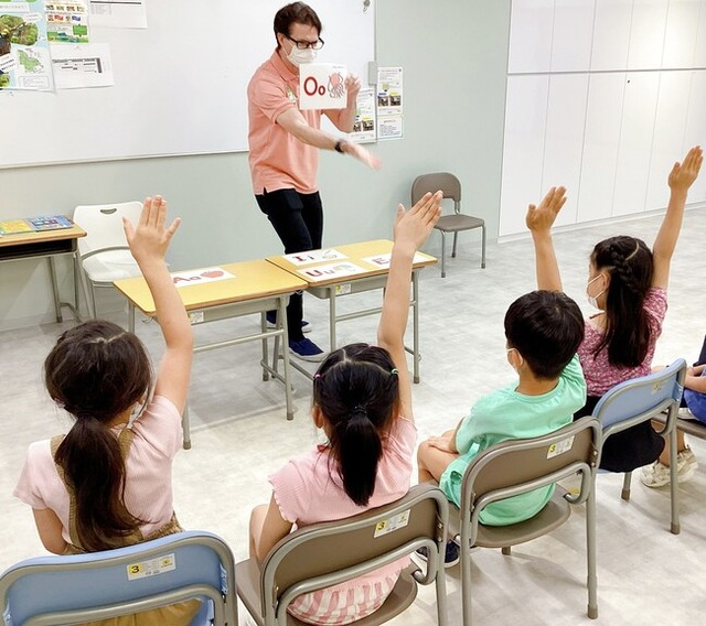 キッズガーデンアフタースクールでは、小学校低学年を対象に、マリースクールの先生がレッスンを行います。マリースクール麻布本校のレギュラープログラムの中からエッセンスを抽出し 45 分間に凝縮したオリジナルカリキュラム「理科実験を通して英語を学ぶ」です。前半は、理科実験で楽しみながら自然な英語に触れ、後半は、理科実験で学んだ単語やフレーズを使ってフォニックスを学び「読み」の基礎を固めていきます。