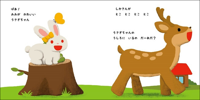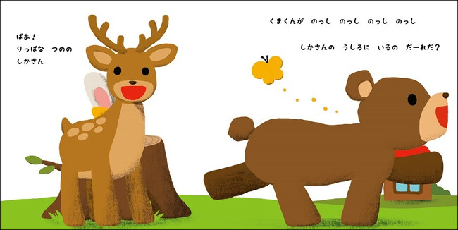 くまさんの後ろに、かくれているのはしかさんでした!