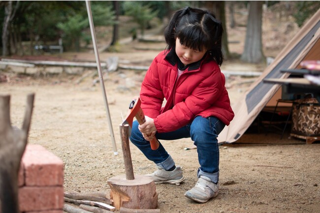 親子で薪割りや火の扱い方を実践的に学ぶことができます。