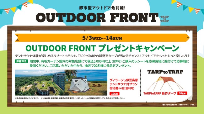 “テントサウナ体験付きリゾートホテルの宿泊券”や“TARPtoTARPの新作タープ”が、合計20名様に当たるプレゼントキャンペーンを実施いたします。