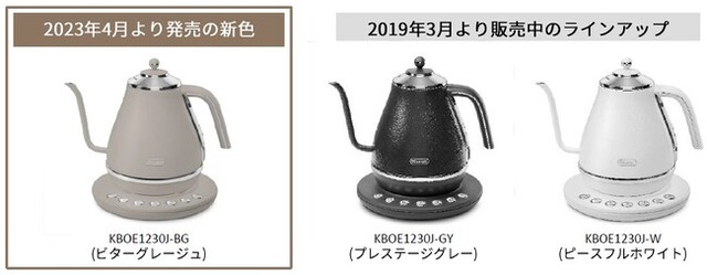 デロンギ・ジャパン株式会社(本社:東京都千代田区 代表取締役社長:杉本敦男)は、発売以来ご好評をいただいているアイコナシリーズの温度設定機能付きモデル「デロンギ アイコナ 温度設定機能付き電気カフェケトル」より、直営店限定カラーとして新色のビターグレージュ(KBOE1230J-BG)を2023年4月12日(水)に発売いたします。