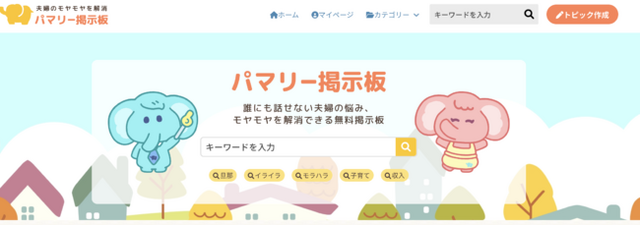 誰にも話せないような夫婦の悩み(子育て・夫婦関係・お金)などモヤモヤを解決するコミュニティーとしてパマリー掲示板というコミュニティーを運営しております。