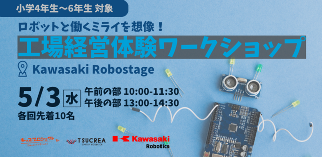 本ワークショップでは、同じく子ども向け教育に力を入れている川崎重工業株式会社と共催で、ロボット教育と起業家教育を掛け合わせたプログラムを提供します。今の子どもたちが大人になる約20年後、ロボットと共存している社会に想像を膨らませることを通じて、自分にできることを考えるきっかけになればとの想いで企画しました。