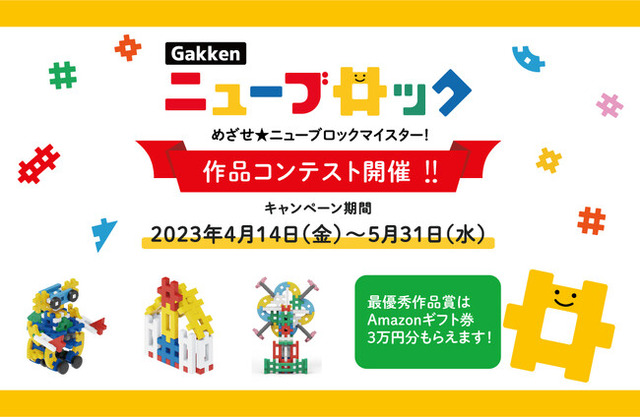 本コンテストでは、応募作品の中から5つの賞「最優秀作品賞」「アイデア賞」「クリエイティブ賞」「小学生賞」「ちびっこ賞」(各1名)を選定、「最優秀作品賞」の方にはAmazonギフト券3万円とお好きなGakkenニューブロックを進呈します。