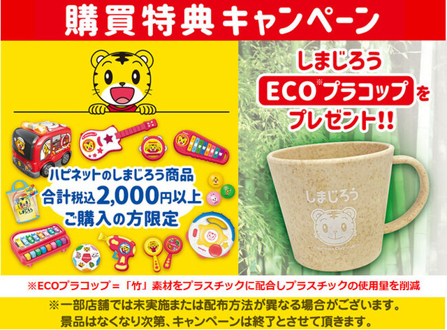 しまじろうのおもちゃ一斉発売の記念として、「ECOプラコップ プレゼントキャンペーン」をおもちゃ販売店にて実施します。(※一部店舗では、未実施または配布方法が異なる場合がございます)