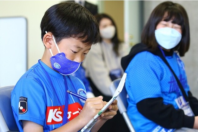 〇選手入場をピッチで出迎える「家族でフラッグサポーター」
