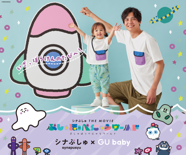 第6弾となる今回は、5月公開の『シナぷしゅ THE MOVIE ぷしゅほっぺにゅうワールド』を題材にしたコラボレーションです。「いざ、ぼうけんのたびへ。」をテーマに、映画のワンシーンを彷彿とさせる空や宇宙をモチーフにデザインしました。メインキャラクターぷしゅぷしゅと、映画に登場する仲間たちをぜひ探してみてください。子ども達の感性を育みながら、親子のコミュニケーションのきっかけにもなる遊び心あふれる仕掛けや、子ども達が着替えやすい工夫をそれぞれの商品に散りばめています。