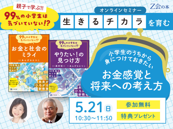 株式会社増進会ホールディングス(Z会グループ)のグループ会社、株式会社Z会ソリューションズは、小学生の親子を対象とした「小学生のうちから身につけておきたいお金感覚と将来への考え方」(参加無料)と題したオンラインセミナーを2023年5月21日に開催します。