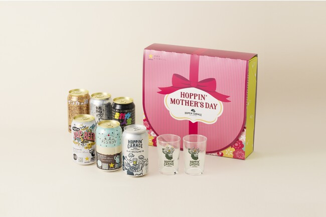 本商品は「HOPPIN' GARAGE」の最新作「HOPPIN’ GARAGE それが人生」を含む6種の人気商品と感謝を伝える母の日メッセージカードとペアグラスがセットになっています。母の日のプレゼントにぴったりのギフトセットです。