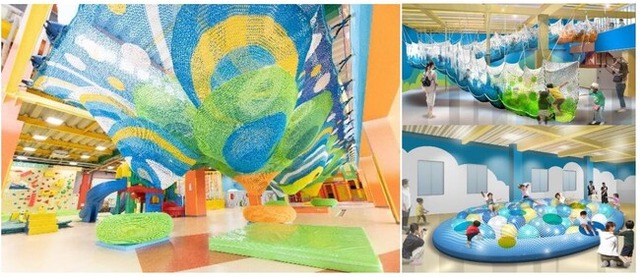 「そらトンネル」は天井から吊るされたトンネル型のネットの中を下から上に上るアクティビティとなっており、水色をメインとしたネット内で、足元に敷き詰められたボールの上を歩く「ふわふわ」とした感覚は、まるで空に向かって登りながら空中散歩をしているような感覚を楽しむことができます。「みずたまぽんぽん」はネットの下にカラフルな水玉模様に敷き詰められたボールの上を「ぽんぽん」跳ねることができるアクティビティとなっており、お子様はその上で浮遊感を存分に楽しむことが可能な施設となっております。