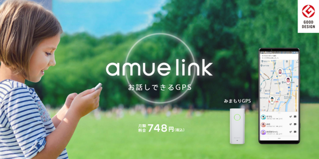「amue link」は、GPSや各種センサーにより、子どもの位置情報等を専用アプリでリアルタイムに見ることや、ボイスメッセージでスマホと端末の双方向にコミュニケーションを取ることができる、”お話しできるGPS”サービスです。