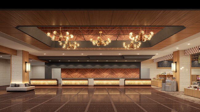 2年前にリニューアルした、モダンな雰囲気の家具がおしゃれなロビー。ちょっとした隙間時間に便利な、お食事やドリンクを楽しめるカフェや、7時半~21時まで営業している売店などもご用意しています。