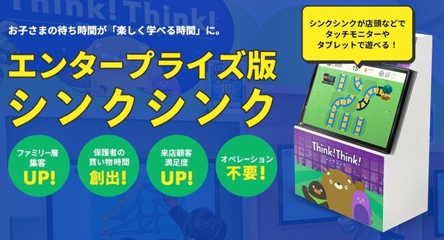 本サービスのベースとなっている知育アプリ「シンクシンク」は、その教育的効果が既に実証されており、保護者の方は安心してお子さまを遊ばせることができます。家族のお買い物時間や待ち時間が「学びの時間」になることで、お客さまの満足度向上にもつながります。