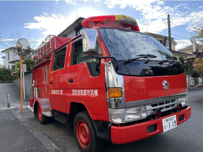 都筑消防署の消防団車両と一緒に写真撮影ができます。