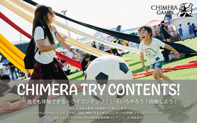 一般社団法人 CHIMERA Union(京都市南区、代表:文平龍太 以下、CHIMERA)は、 2023年5月20日(土)・21(日)にて開催する2日間限定の巨大アミューズメントパーク「CHIMERAGAMES VOL.8」に参加する体験コンテンツを追加発表いたしました。