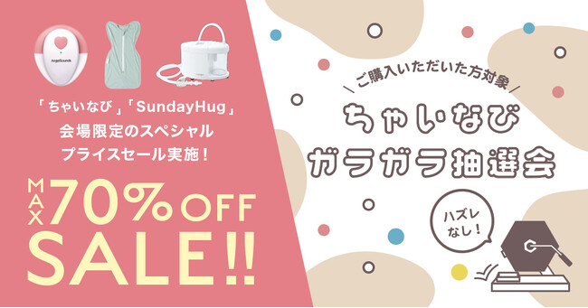 ちゃいなびは、「毎日の暮らしに安心を。」をコンセプトに、マタニティ・ベビー・ヘルスケアグッズを展開しています。ブースでは、SNSで人気の胎児超音波心音計「エンジェルサウンズ」や、杉浦太陽さんがアンバサダーを務める電動鼻水吸引器「スルルーノ」、韓国発のベビー用品ブランド「SundayHug(サンデーハグ)」、健康管理に役だつ非接触体温計等を展示予定です。また、当日は物品販売も行い、通常時ではセール対象外の商品も2日間限定で特別価格で販売します。ブース来場者限定の特別イベント「ちゃいなびガラガラ抽選会」も開催予定で、参加者には当選順位に応じてベビーグッズをプレゼントします。