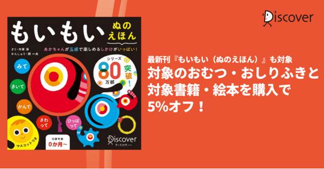 4/17より、Amazonにて、ディスカヴァーの対象書籍・絵本と対象のおむつ・おしりふきを合わせて買うと、合計金額から5%オフになるキャンペーンを開催中です。