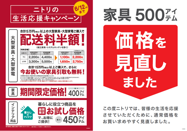 新しい生活も始まった今だからこそ、より多くのお客様の暮らしに寄り添いたいという想いから、お得な「ニトリの生活応援キャンペーン」を再び全国で開催いたします。