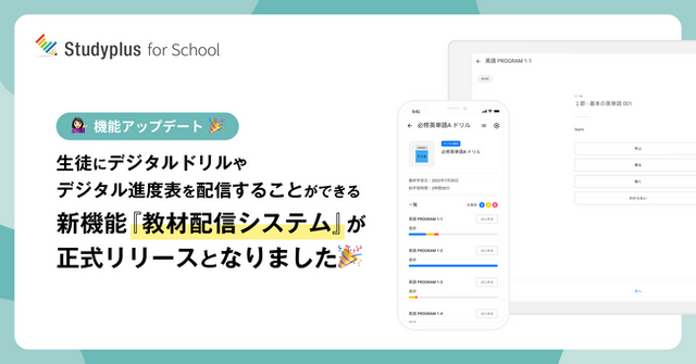 スタディプラスは、2022年10月に「Studyplus for School」を大幅リニューアルし、「教材配信システム」と「教室管理システム」が利用できる無料プランを提供することを発表しました。