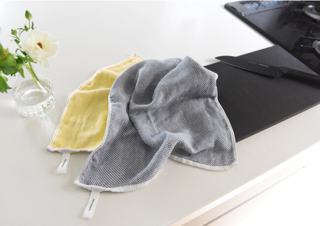 コットン100%素材のタオルならではの、高い吸水性も魅力。しっかり水分を吸収してくれるので、シンク周りの水滴を拭き取ったり、食器拭きとしてもお使いいただけます。