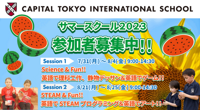 株式会社CTIS(本社:東京都港区南麻布、代表取締役:佐藤 崇弘)が運営するキャピタル東京インターナショナルスクール(CTIS)は、2023年度もサマースクールを実施します。小学1年生から4年生を対象にした、CTIS生以外のお子様も参加できるイベントです。今回のサマースクールでは工作キットを使いながら英語で磁力、電気、宇宙、静物などの理科の様々な分野を学んだり、STEAM教師から英語でロボットプログラミングを学んだりと、英語での楽しい学びと体験が盛りだくさんの内容となっています。体験したものの中から気に入ったものを選んで掘り下げて、夏休みの自由研究にしていただいても良いかもしれません。
