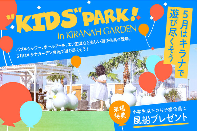 株式会社 Kirahah Resort(読み:キラナリゾート、本社:東京都千代田区)が運営する屋外レジャー・レストランの複合施設「キラナガーデン豊洲」は5月月間、子どもたちが来て遊んで楽しいコンテンツが盛りだくさんの「“KIDS” PARK」を開催いたします。行楽日和の続く5月には、ぜひお子さまと一緒にキラナガーデン豊洲にお越しください。