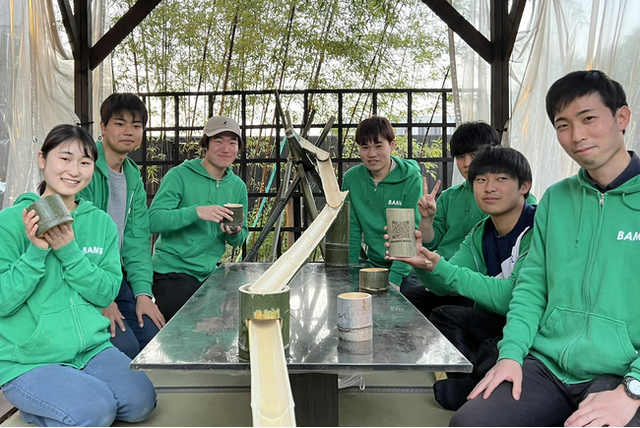 BAM部は、地域の社会課題を持続可能なサイクルで解決することを理念に掲げ、放置竹林問題解決に向けた竹林整備や竹の活用、商品開発などの活動を行っています。竹の価値、魅力を再認識してもらいたいと、白寿の湯でイベントを行います。BAM部特製セルフ流しそうめんは、箸も器も台もすべてが竹でできています。ゴミを出さない、環境に配慮したサスティナブルな流しそうめんです。また、5月5日のこどもの日には竹おもちゃ作りワークショップを開催。竹を使った工作体験を通じて、子どもたちに竹について楽しく知ってもらいたいと実施します。