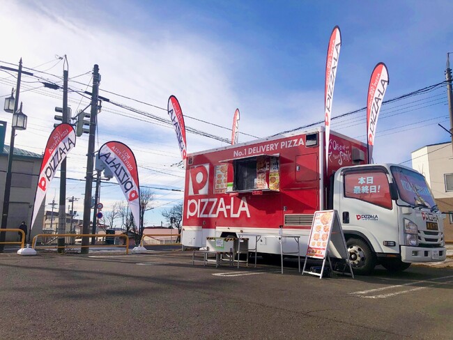 北海道から沖縄まで、日本全国のスーパーマーケットやホームセンター、道の駅などに出店しているピザーラの移動販売。全国で約50台のキッチンカーが稼働しています。