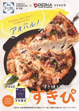 株式会社フォーシーズ(本社:東京都港区南青山 代表取締役社長:淺野幸子)が展開する宅配ピザ「PIZZA-LA」は、大和高田市立高田商業高等学校(奈良県大和高田市)の「まち部。」の皆さんと共同開発したコラボピザ『すきぴ(すき焼き風ピザ)」を2023年4月29日(土・祝)から奈良県内でのピザーラキャラバンで期間限定販売いたします。