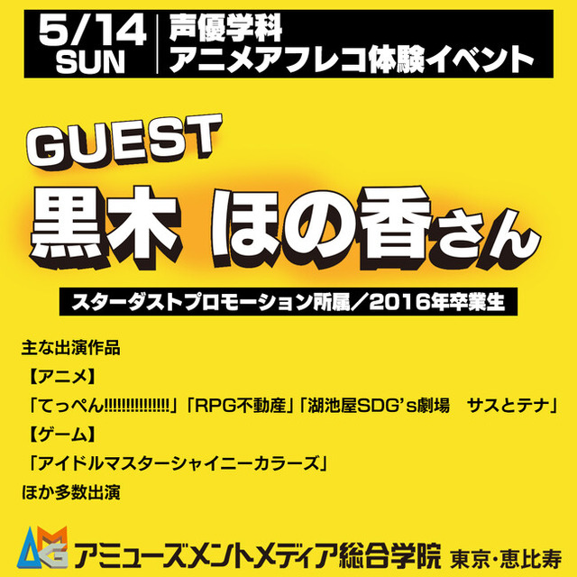 「声優学科説明会&卒業生声優“黒木ほの香さん”とアニメアフレコ体験」