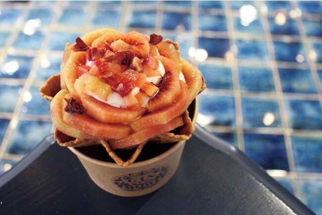 中にはどんぐり乳酸菌(※1)でつくったジェラートや特製のクリームを中心に、自家製スポンジケーキやナッツがたっぷりで楽しい食感に仕立てました。