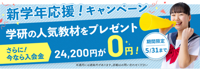 特典1. 5月1日~5月31日までにご入会いただいた方限定で、学研の人気教材をプレゼントいたします。お子様の学習状況を分析させていただき、お子様に合う教材をこちらで選定させていただきます。
