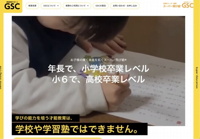 家庭教育サポートGSCは、激変する教育の受け皿となるスーパー飛(R)び級のためのスーパー教育(R)コンテンツをオンラインで、直接ご家庭にお届けします。