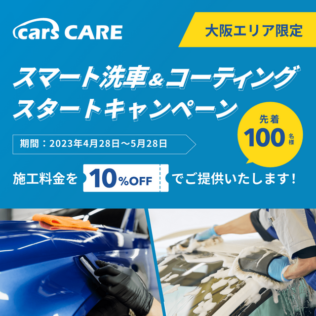 グローバルカーライフテックカンパニー cars 株式会社は、「おそうじ本舗」を通した出張型の手洗いプレミアム洗車およびコーティングサービスを2023年4月19日にリリースしました。この度、リリースを記念してスタートキャンペーンを開催しています。