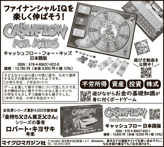 マイクロマガジン社(東京都中央区)は、ボードゲーム『キャッシュフロー』『キャッシュフロー・フォー・キッズ』を5月5日のこどもの日に合わせて、中日新聞・北陸中日新聞・東京新聞に掲載いたしました。