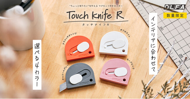 1979年にオルファが発売した「タッチナイフ」をベースに、裏面にマグネットを付けてさらに便利に、またインテリアに溶け込むカラーにリニューアルした、新しい装いとなっております。お好みで選べる4色展開で、スチール製の家具や冷蔵庫に貼り付けても生活感が出にくいシンプルなデザインに仕上げました。