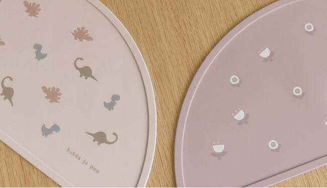 そんな悩みを抱えるママたちの負担を、少しでも減らしたくて作られたのが、kukka ja puuの「シリコンビブ」と「シリコンマット」です。