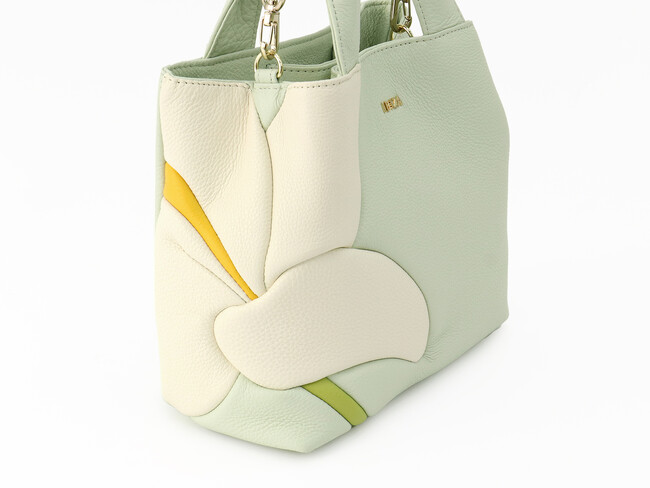 素材は、やわらかな表情の花モチーフをより一層際立たせる上質な北米産のシュリンクレザーを使用しています。肉厚でふっくらとしたソフトな手触りや、素材感のある程よいナチュラルなシボが、オリジナルカラーの「ペールグリーン」とあいまってより優美な印象を演出。汚れや傷も目立ちにくいので、長くご愛用いただけます。