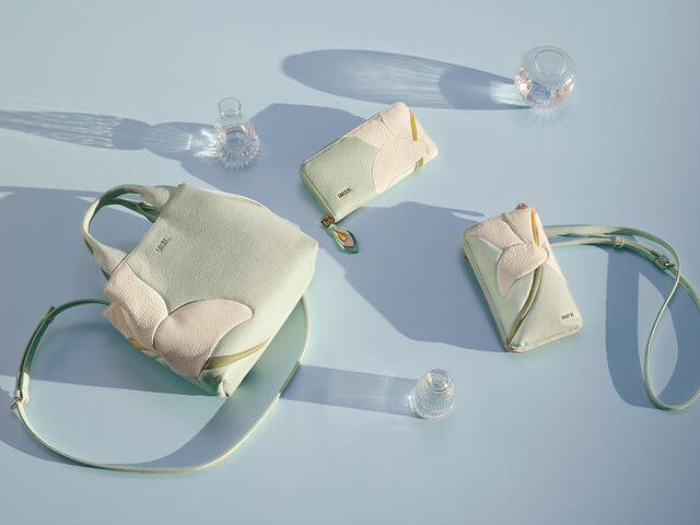 2WAYバッグのほか、スマートフォンポシェット、ラウンドファスナー財布、L字ファスナー財布、二つ折りファスナー財布がラインアップ。毎日使える革小物は、大切な方への贈り物にも最適。花を手にした時のように華やいだ気持ちにさせてくれるシリーズです。