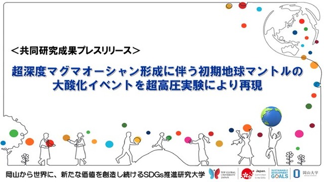 愛媛大学地球深部ダイナミクス研究センターの桑原秀治助教と入舩徹男教授、海洋研究開発機構(JAMSTEC)高知コア研究所の中田亮一主任研究員、JAMSTECの門屋辰太郎Young Research Fellow、岡山大学惑星物質研究所の芳野極教授の研究チームは、巨大天体衝突によって生じる深いマグマオーシャン中で生成する3価鉄の量を決める実験に成功しました。その結果、下部マントル圧力条件下では理論予測よりもはるかに効率よく2価鉄の電荷不均化反応によって3価鉄と金属鉄が生成することを明らかにしました。