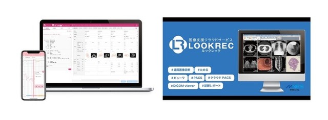 エムネスが提供する『LOOKREC』は、病院・クリニック、または医師をはじめとした医療従事者向けの医用画像管理・共有システムです。超音波で撮影した画像および測定したデータ(DICOM-SR形式)はもちろんのこと、レントゲン、CT、MRIなどの医用画像をクラウド上に容量を気にすることなく安全に保存することができます。また、病理・マンモグラフィー・眼底・心電図・内視鏡といった各種画像もDICOM変換(専用ツールあり)することで保存と閲覧が可能です。