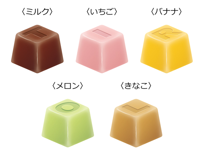 通常のチロルチョコ24分の1サイズ「プチロル」は、ミルク・いちご・バナナ・きなこ・メロンの5つの味が楽しめます。