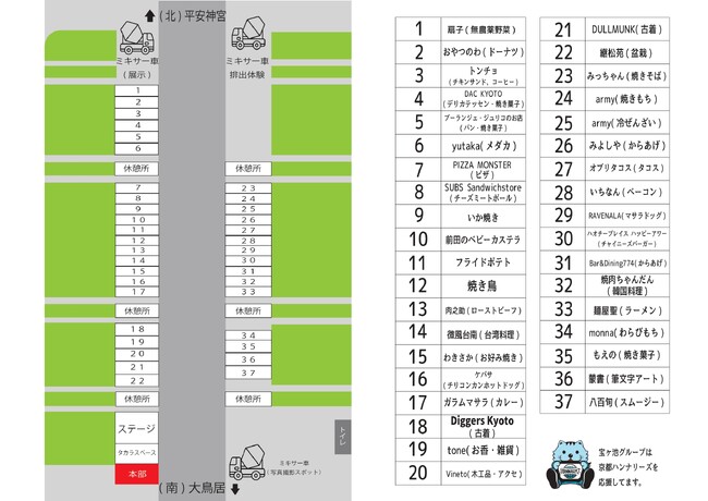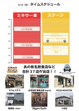 京都市左京区にある有名カレー店のガラムマサラ、上京区にある台湾料理店 台湾食堂 微風台南 tears2などを含む飲食店や物販 全37店舗が出店致します。