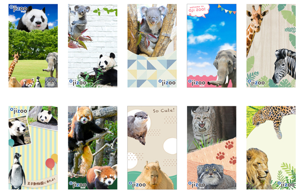 人気者、パンダの「タンタン」やコアラ、ライオン、ゾウ、キリンなどの、動物たちと撮影できるフレームデザインが10種類。 好きなデザインを選んでお楽しみいただけます。
